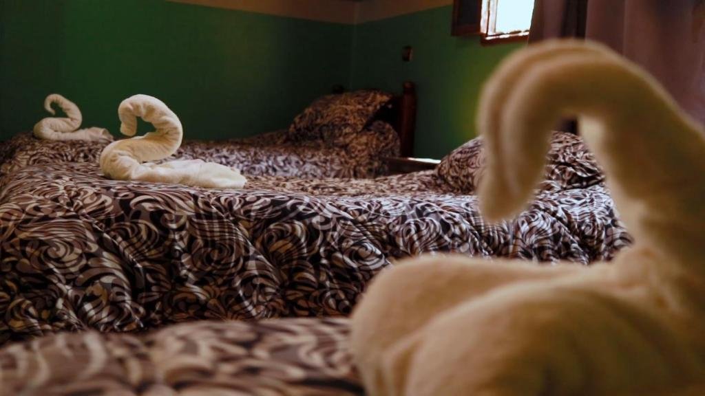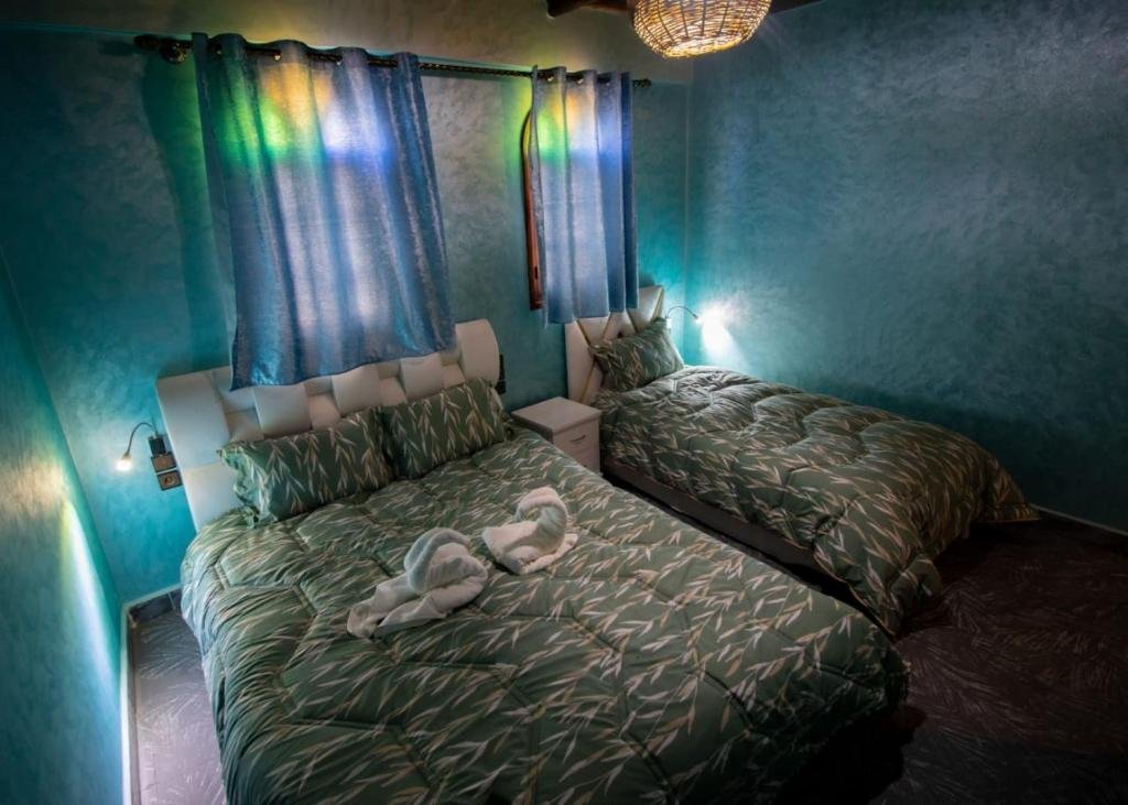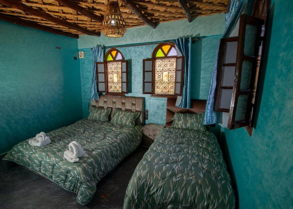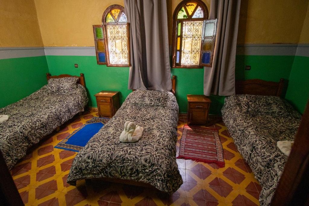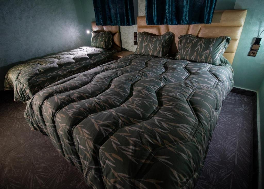 Une solution pratique pour les familles ou les petits groupes. Cette chambre dispose de trois lits, d’un espace simple mais bien agencé, parfait pour une halte économique tout en gardant le confort nécessaire.